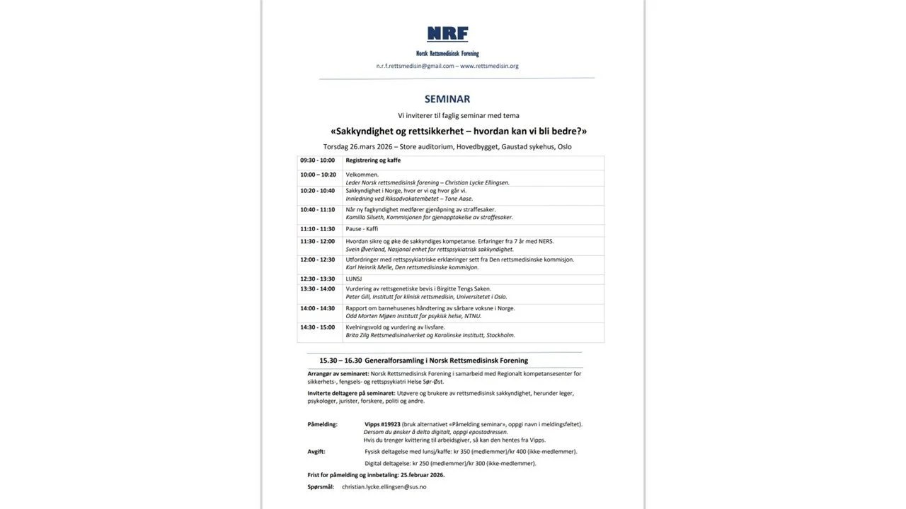 Den nasjonale gruppen følger saken videre med støtte fra Norsk Rettsmedisinsk Forening.