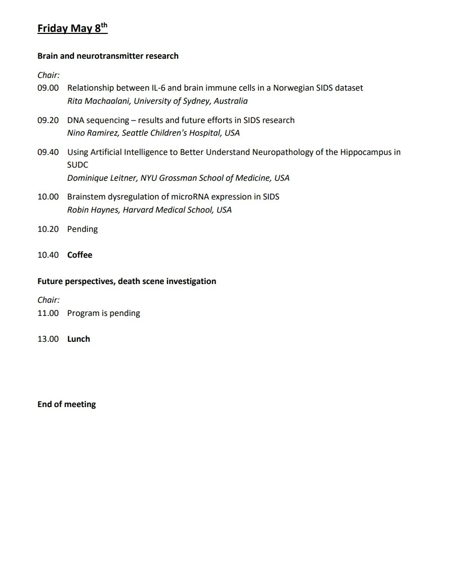 IMeeting on Sudden Infant Death and Pediatric Forensic Challenges Soria Moria, Oslo, 6-8 th of May 2026